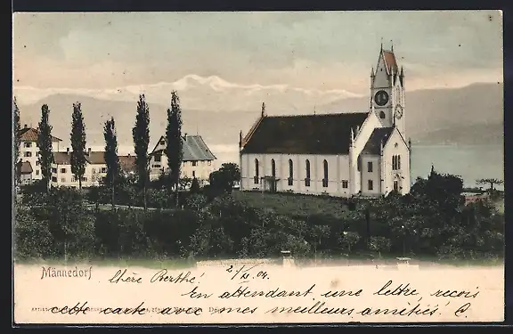 AK Männedorf, Teilansicht mit Kirche aus der Vogelschau