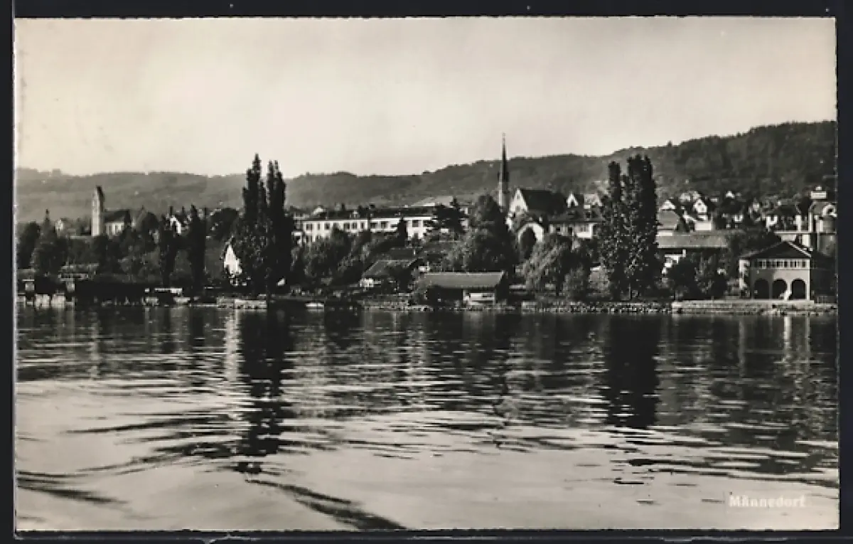 AK Männedorf, Uferpartie mit Kirche