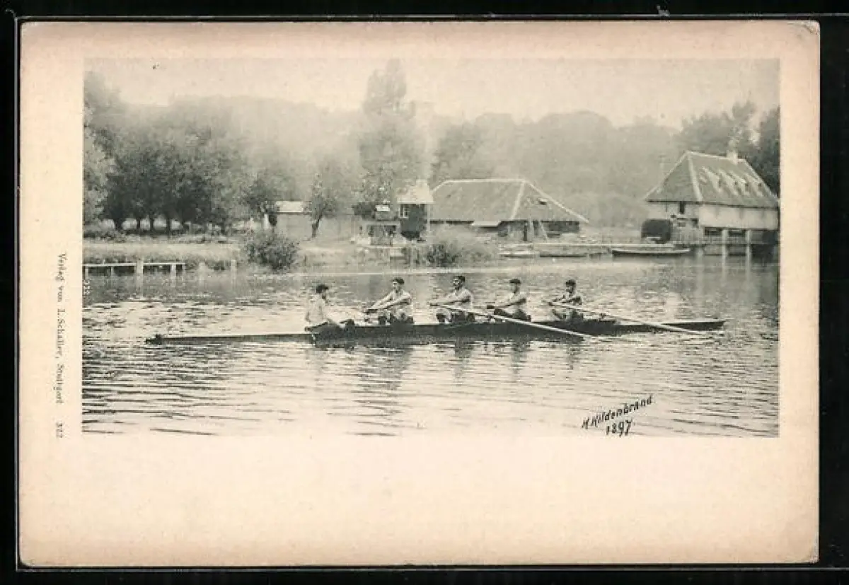 AK Männer in einem Vierer mit Steuermann auf einem Fluss