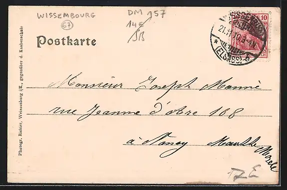 gelaufen 1910, Eckknick li. unten, guter Zustand