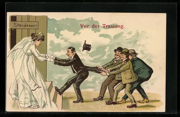 AK Männer versuchen den Bräutigam vor der Trauung zu retten - frauenfeindlicher Humor