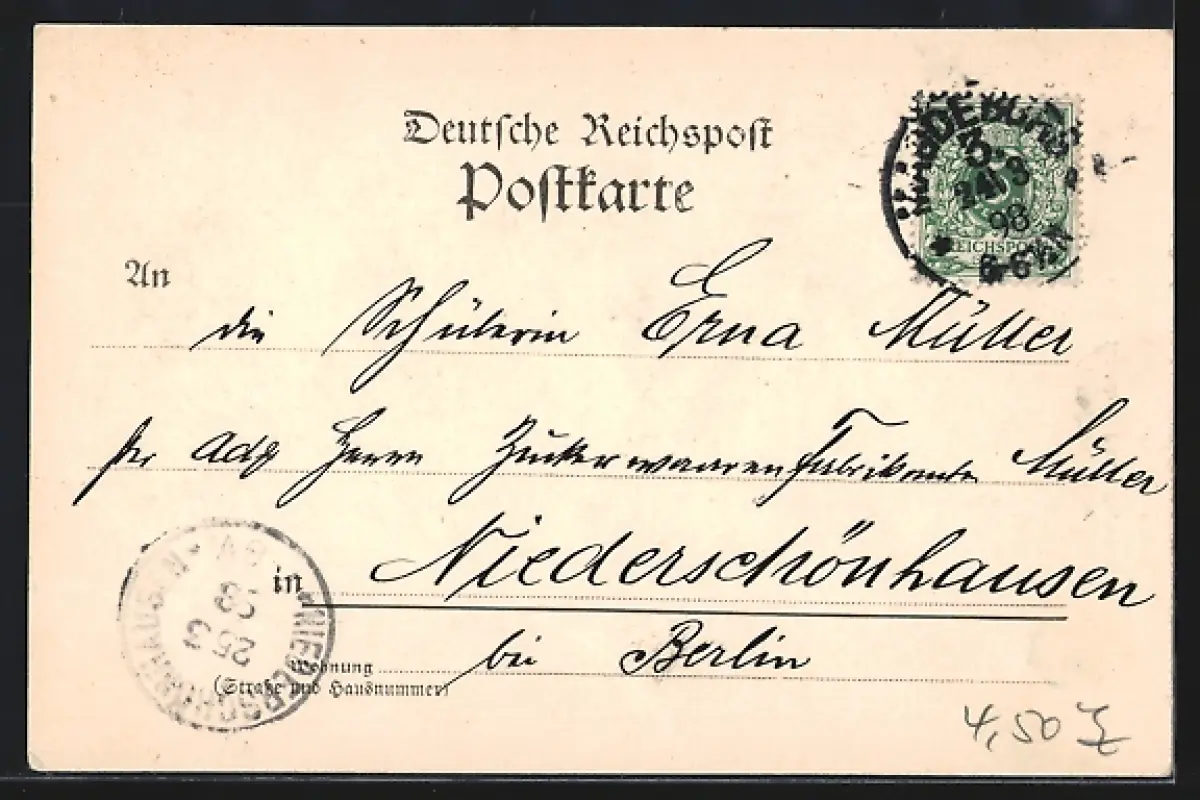 alte Ansichtskarte, gelaufen 1898, Stempelspur, guter Zustand
