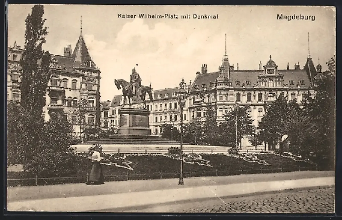 AK Magdeburg, Kaiser Wilhelm-Platz mit Denkmal
