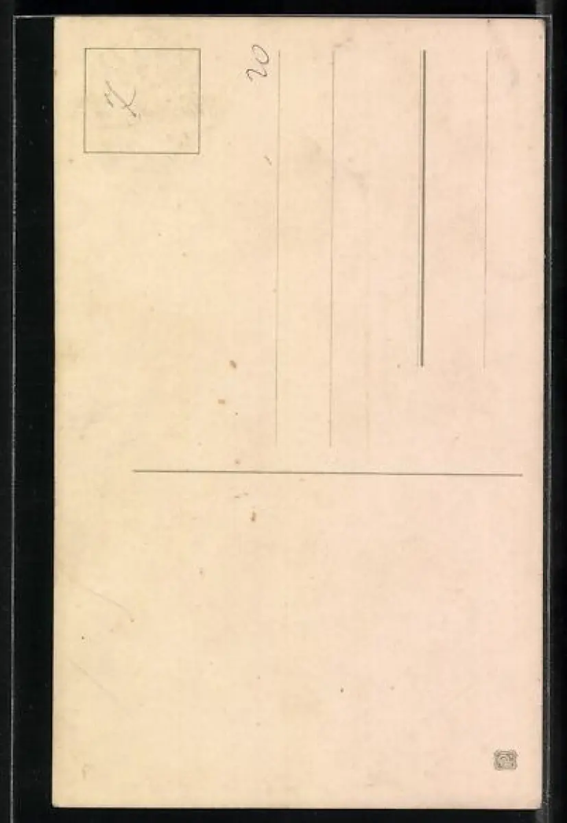 Personenbezogene Daten auf der Rückseite der Karte wurden durch blauen Textmarker unkenntlich gemacht. Die blauen Stellen sind auf die Vorderseite durchgeweicht und wirken sich negativ auf das Postkartenfoto aus