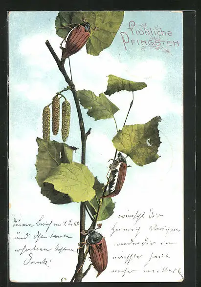 AK Maikäfer krabbeln einen Blätterzweig hinauf