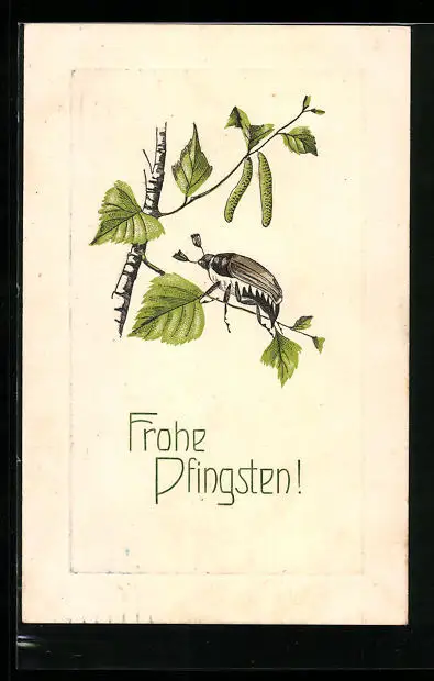 AK Maikäfer krabbelt auf dem Zweig einer Birke, Pfingstgruss