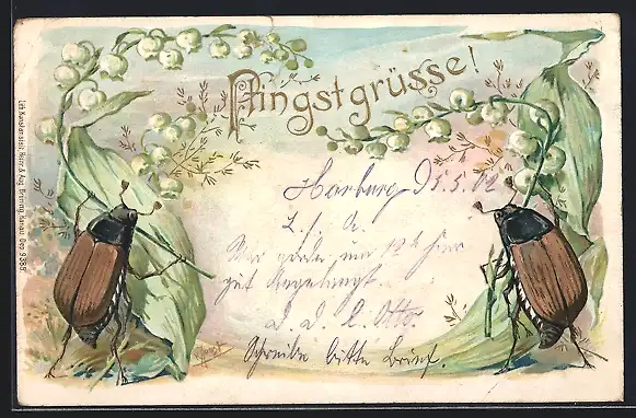 AK Maikäfer mit Maiglöcken