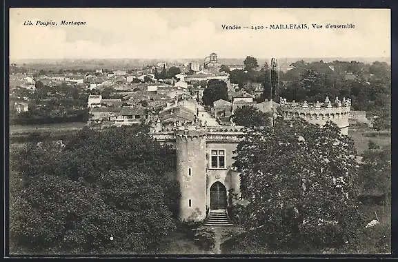 AK Maillezais, Vue d`ensemble du village et du château entouré d`arbres