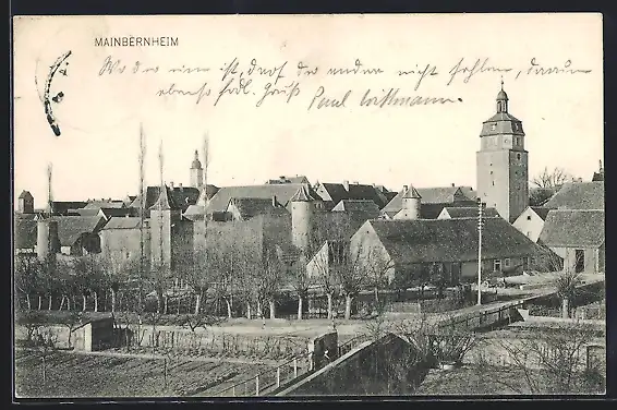 AK Mainbernheim, Ortspartie mit Grünanlage