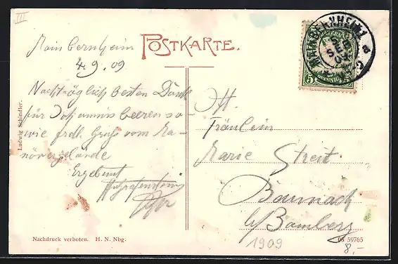 alte Ansichtskarte, gelaufen 1909, guter Zustand