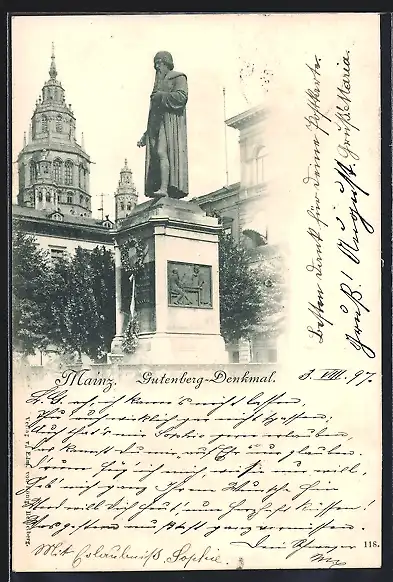 AK Mainz, Blick aufs Gutenberg-Denkmal