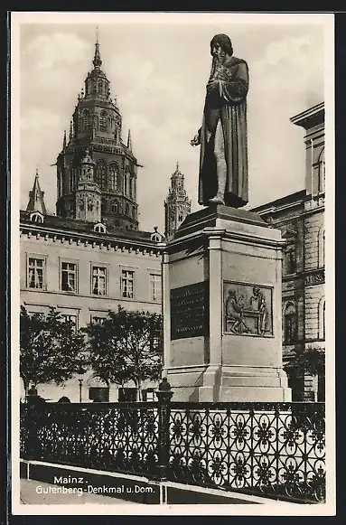 AK Mainz, Gutenberg-Denkmal und Dom
