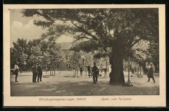 AK Mainz, Offiziergefangenen-Lager, Spiel- und Turnplatz