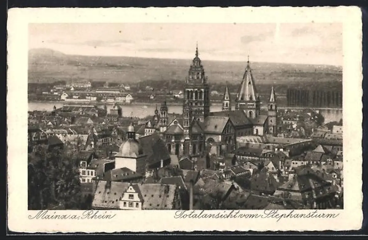 AK Mainz a. Rhein, Totalansicht vom Stephansturm