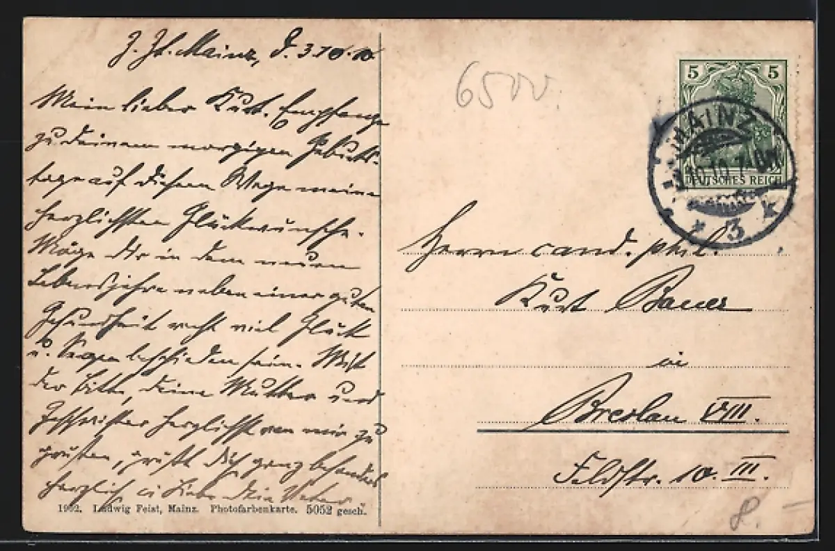 alte Ansichtskarte, gelaufen 1910, guter Zustand