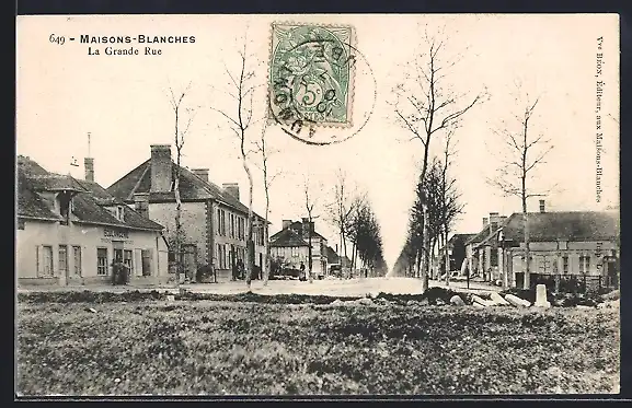 AK Maisons-Blanches, La Grande Rue avec bâtiments et arbres alignés