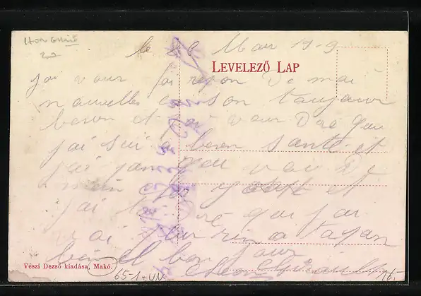 Personenbezogene Daten auf der Rückseite der Karte wurden durch blauen Textmarker unkenntlich gemacht. Die blauen Stellen sind auf die Vorderseite durchgeweicht und wirken sich negativ auf das Postkartenfoto aus