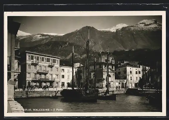AK Malcesine, Hafenpartie, Albergo Centrale, Fischerboote