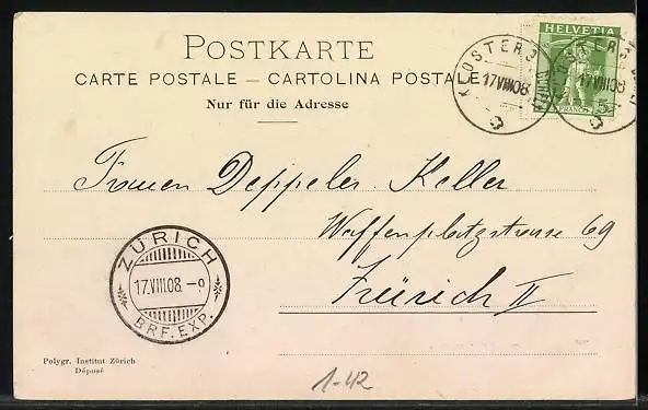 alte Ansichtskarte, gelaufen 1908, guter Zustand