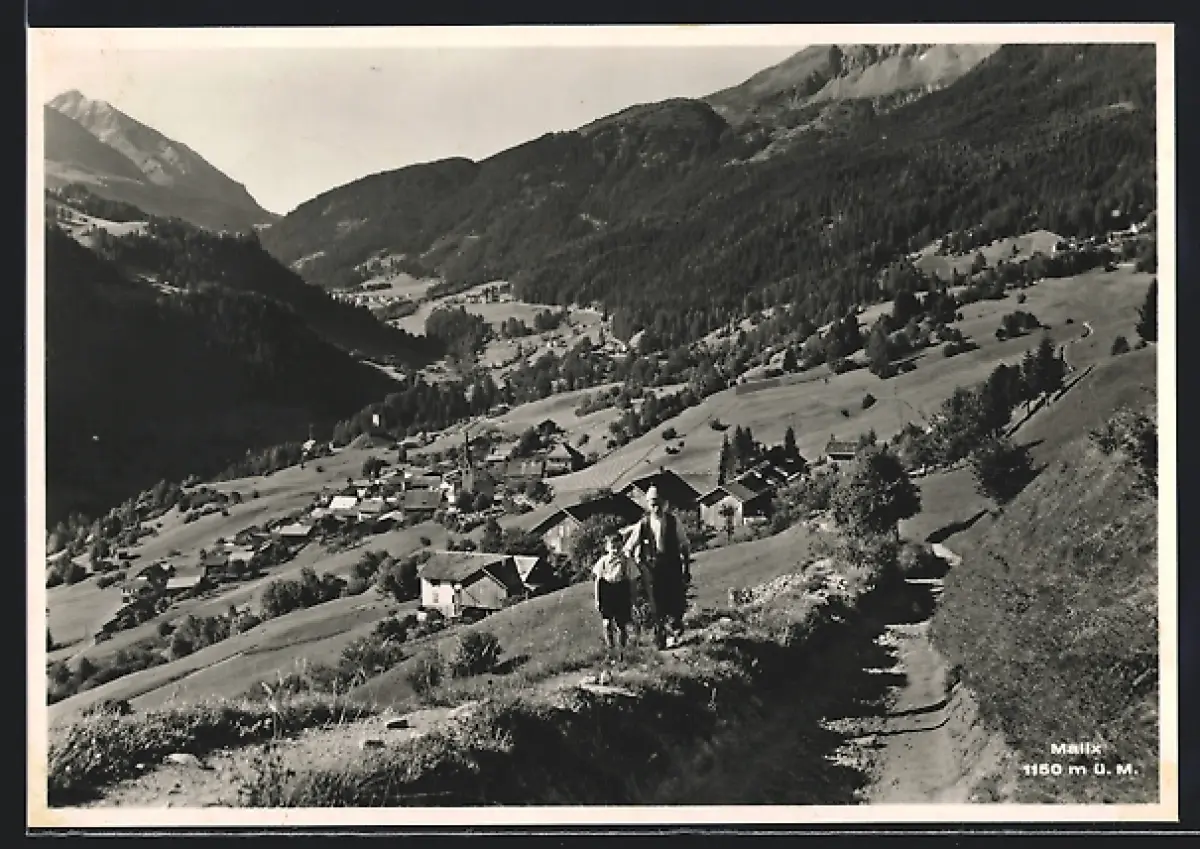 AK Malix, Ortsansicht vom Wanderweg mit Frau und Kind