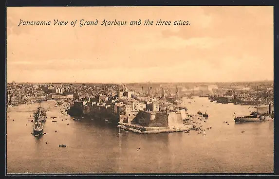 AK Malta, Panoramic View of Grand Harbour and the three cities