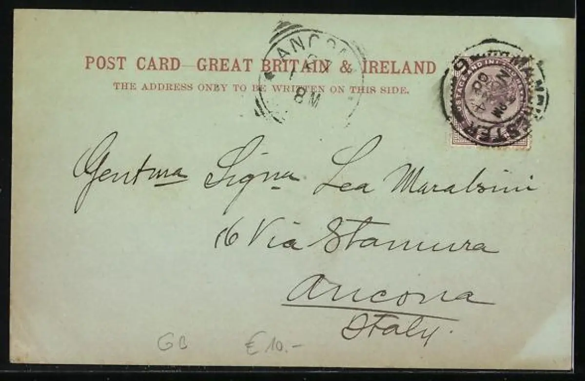 gelaufen 1900, Eckknick re. unten, Albumspuren, Stempelspur, guter Zustand