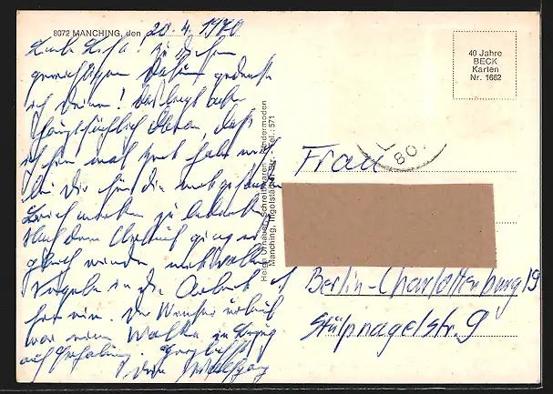 alte Ansichtskarte, gelaufen 1970, Briefmarke entfernt, guter Zustand