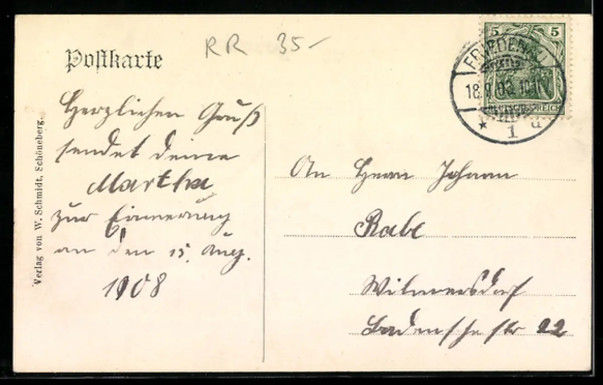 alte Ansichtskarte, gelaufen 1908, guter Zustand