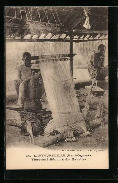 AK Mann an einem Webstuhl sitzend, Teppich