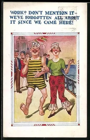 AK Mann im Badeanzug mit einer Frau, Scherz