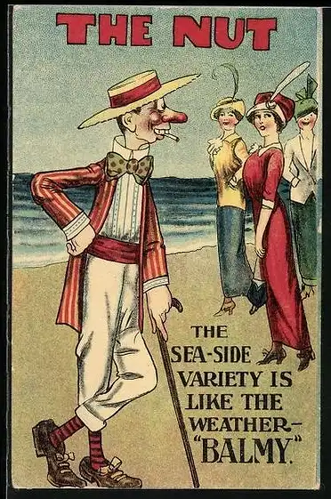 AK Mann schaut Frauen am Strand hinterher, Scherz