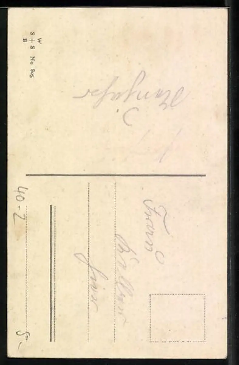 Personenbezogene Daten auf der Rückseite der Karte wurden durch blauen Textmarker unkenntlich gemacht. Die blauen Stellen sind auf die Vorderseite durchgeweicht und wirken sich negativ auf das Postkartenfoto aus