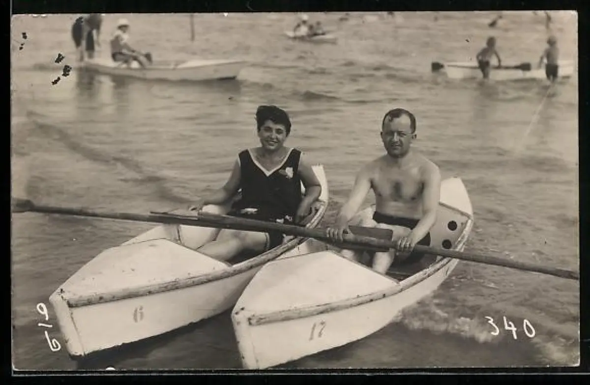 AK Mann und Frau in zwei Ruderbooten