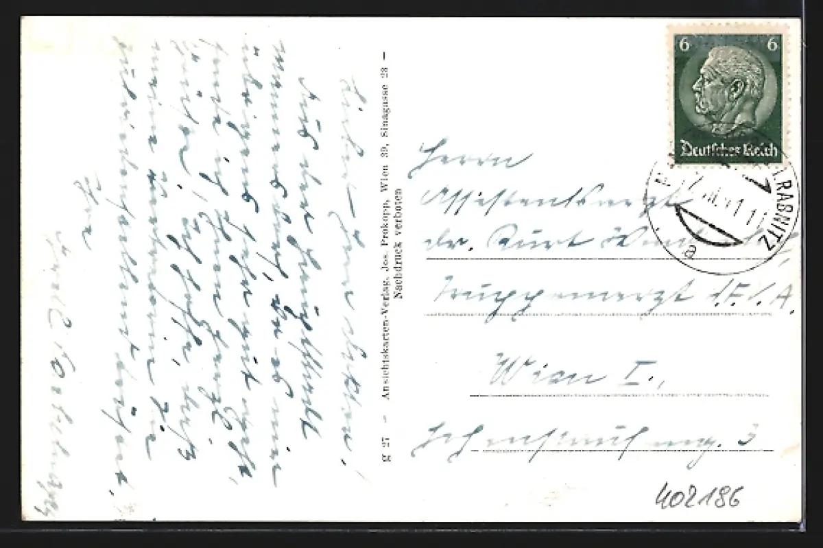 gelaufen 1941, rückseitig Klebe- und Papierreste, rückseitig Oberflächenschaden, guter Zustand