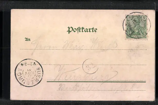 alte Ansichtskarte, gelaufen 1901, guter Zustand