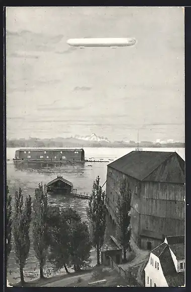 AK Manzell, Zeppelin über der Wiege der Luftschifffahrt