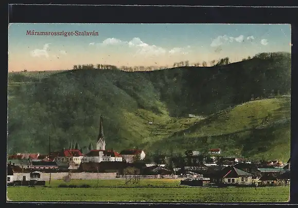 AK Máramarossziget-Szalván, Panorama mit Kirche
