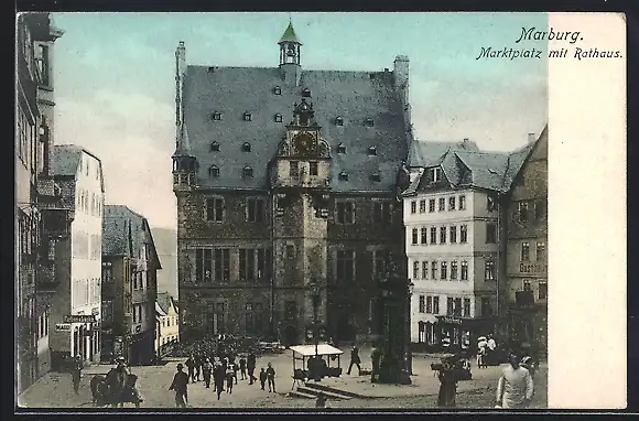 AK Marburg, Marktplatz mit Rathaus