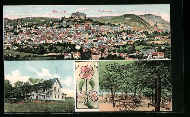 AK Marburg, Restaurant Hansenhaus von E. Herling, Stadtansicht