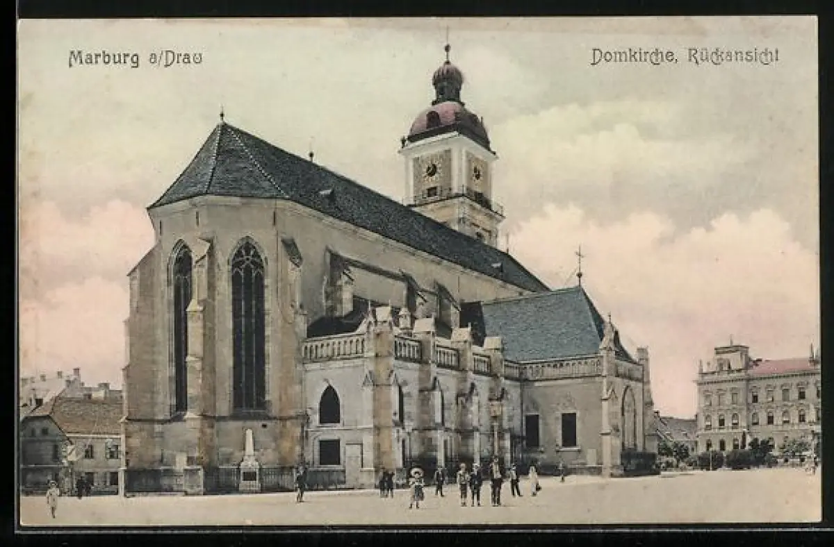 AK Marburg a. Drau, Rückansicht der Domkirche
