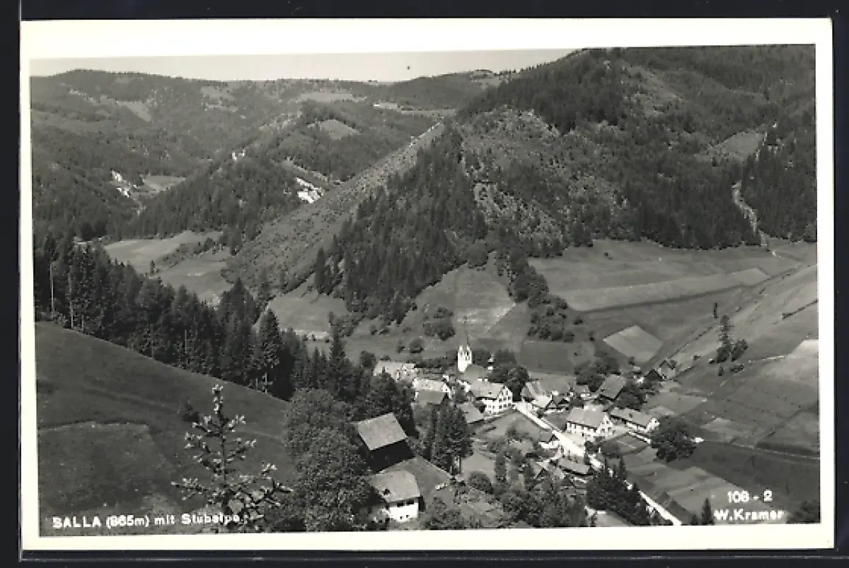 AK Maria Lankowitz, Salla, Ortsansicht aus der Vogelschau mit Stubalpe