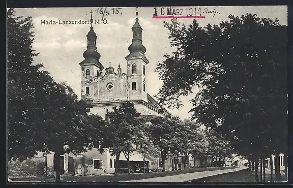 AK Maria-Lanzendorf /N.-Ö., Wegpartie an der Wallfahrtskirche