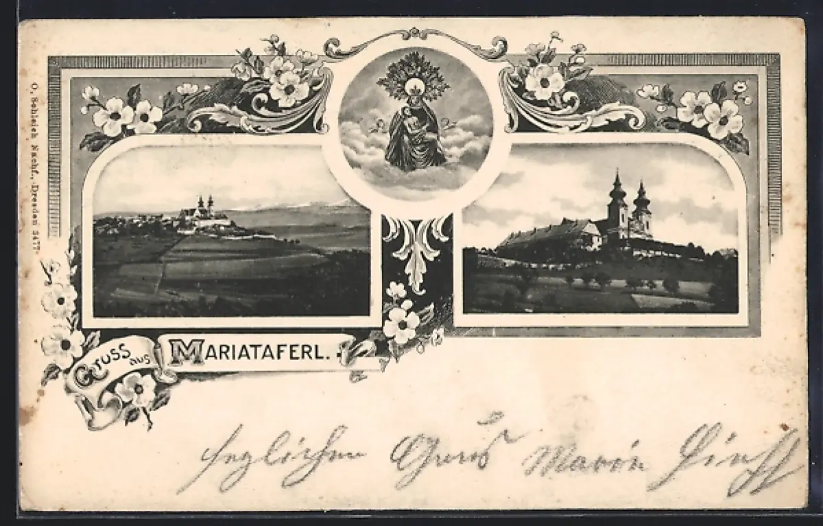 AK Maria Taferl, Ortsansicht, Kirche, Gnadenbild, Blumen-Ornamente