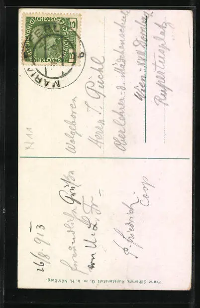 alte Ansichtskarte, gelaufen 1913, Eckknick li. oben, guter Zustand