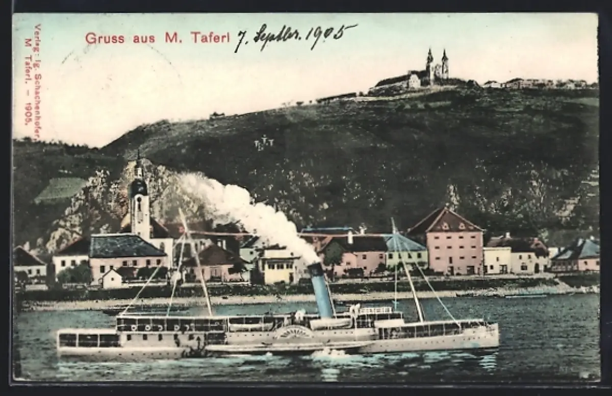 AK Maria Taferl, Wallfahrtsort von der Donau aus, Dampfer