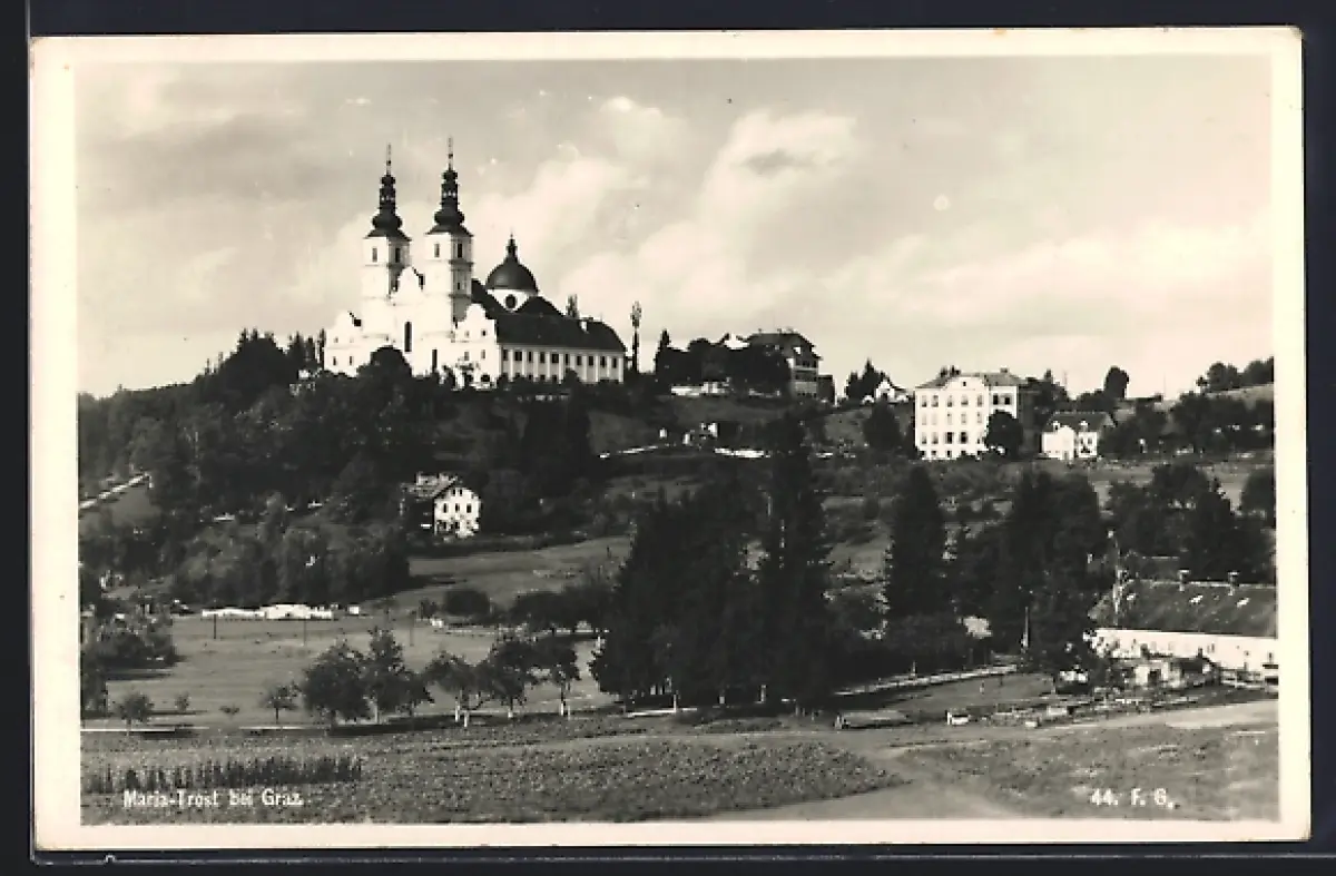 AK Maria-Trost bei Graz, Ortspanorama mit Basilika