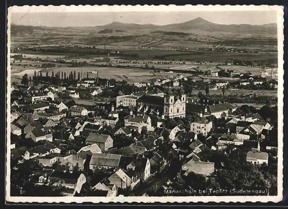 AK Mariaschein b. Teplitz, Ortsansicht aus der Vogelschau