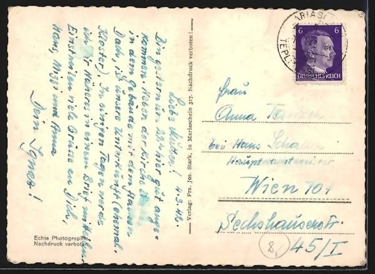 alte Ansichtskarte, gelaufen 1942, Eckknicke oben, guter Zustand