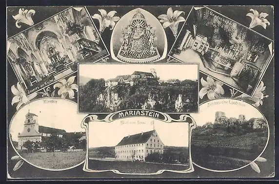 AK Mariastein, Hotel zum Kreuz, Schlossruine Landskron, Kirche, Gnadenkapelle