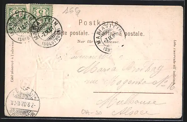 alte Ansichtskarte, gelaufen 1902, Bugspur re. oben, guter Zustand